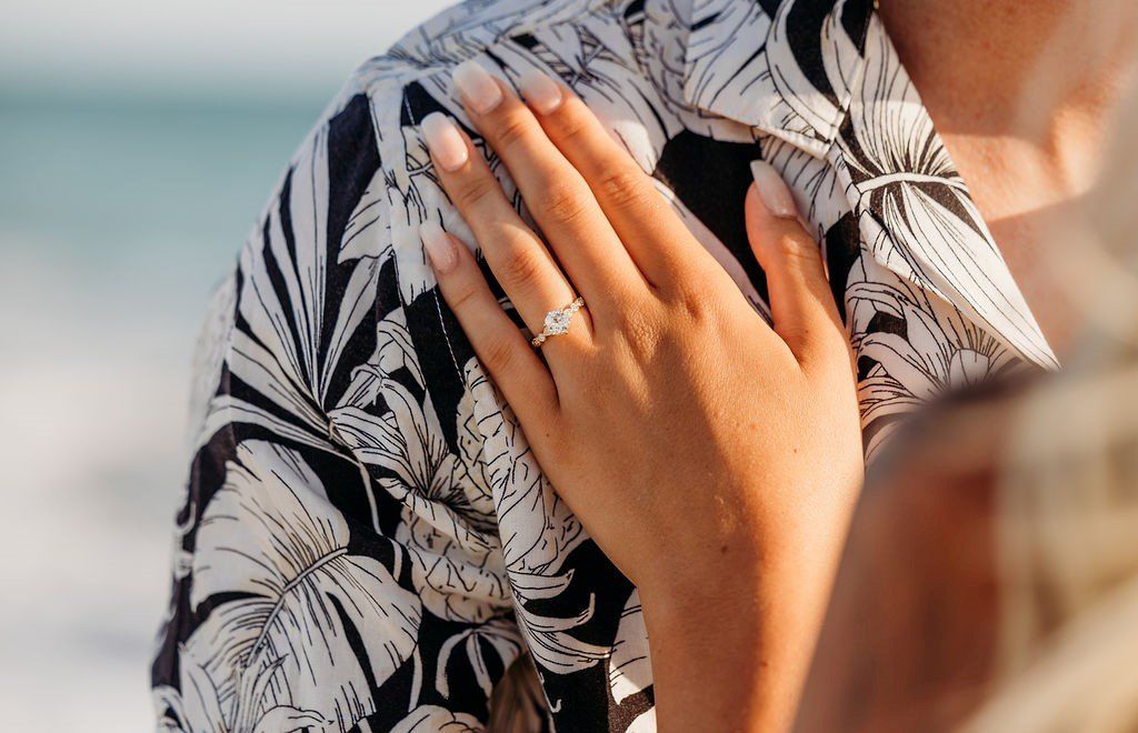 This month's featured couple is sharing their special moments from across the globe! Ellen & Jean-Pierre were traveling for a family wedding this summer in Ireland and took advantage of the breathtaking scenery for their Engagement Shoot! Ellen's ring was custom designed in-house featuring a stunning Oval Sapphire center stone and diamond accent stones!